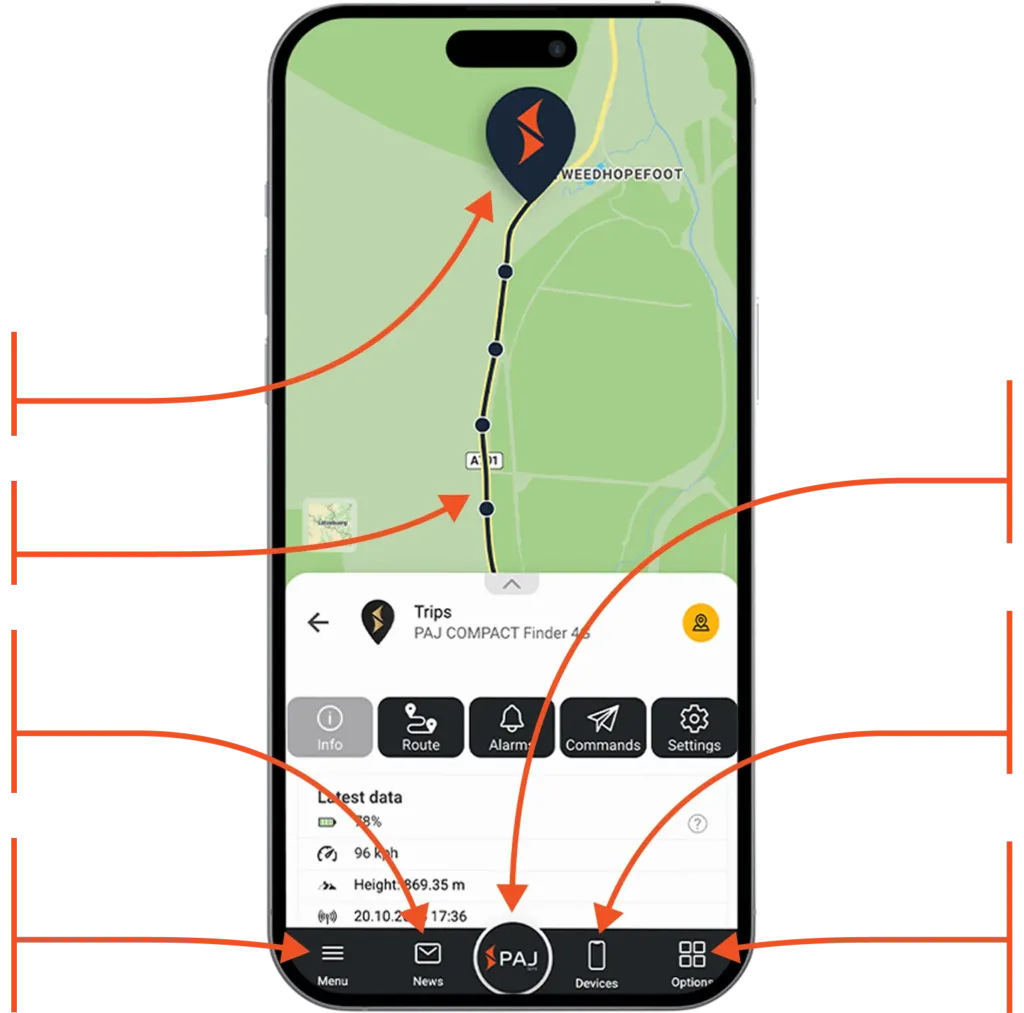 More than just an app, the FINDER Portal provides all the tools you need for efficient GPS tracking, including live location, route history, smart alerts, and central device management, accessible on any device worldwide.